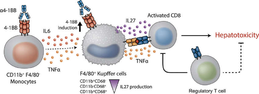 但是激動型4-1BB抗體也存在一定的副作用。用藥后4-1BB的廣泛表達(dá)導(dǎo)致機體T細(xì)胞的過度激活,從而帶來潛在的肝毒性和全身免疫反應(yīng)的風(fēng)險。