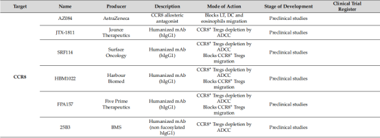 下表是有關(guān)CCR8靶點(diǎn)的藥物,作用機(jī)制以及相關(guān)公司: