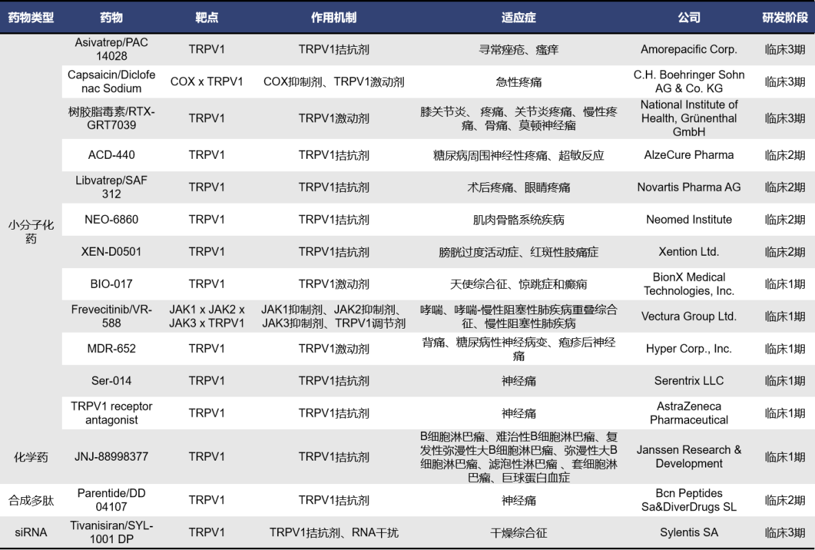 4、靶向TRPV1藥物臨床研究進(jìn)展