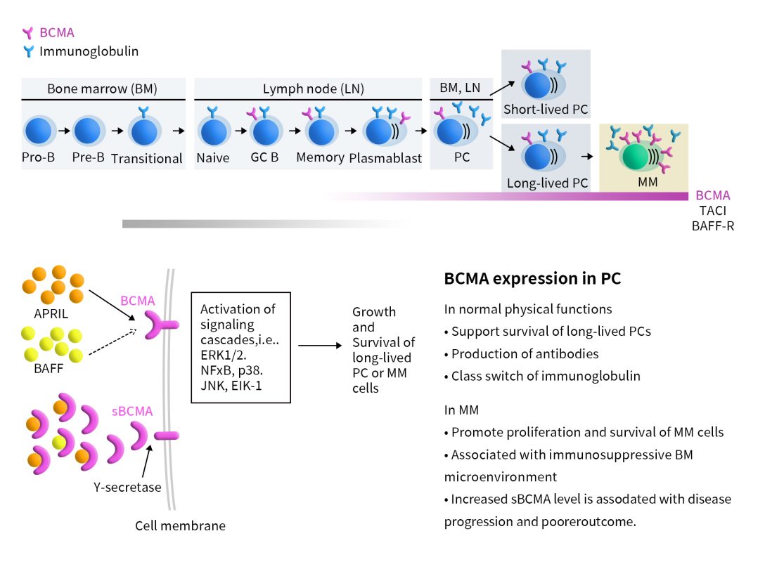 Figure 1. The pathophysiological process of MM and BCMA signaling pathway [1]