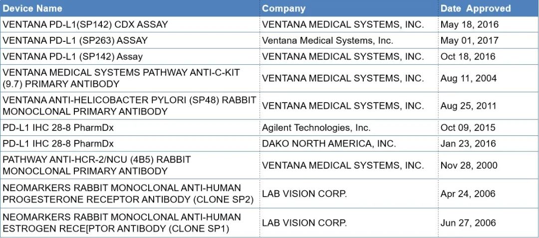 目前,已經(jīng)有數(shù)十種兔單克隆抗體被 FDA 批準用于相關疾病的臨床診斷。主要涉及腫瘤相關抗原的表達檢測,包括HER2、雌激素受體、孕酮受體和PD-L1。