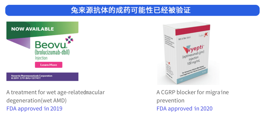 這兩款兔源經(jīng)過人源化后單克隆抗體的獲批,證明了兔單抗的可成藥性。