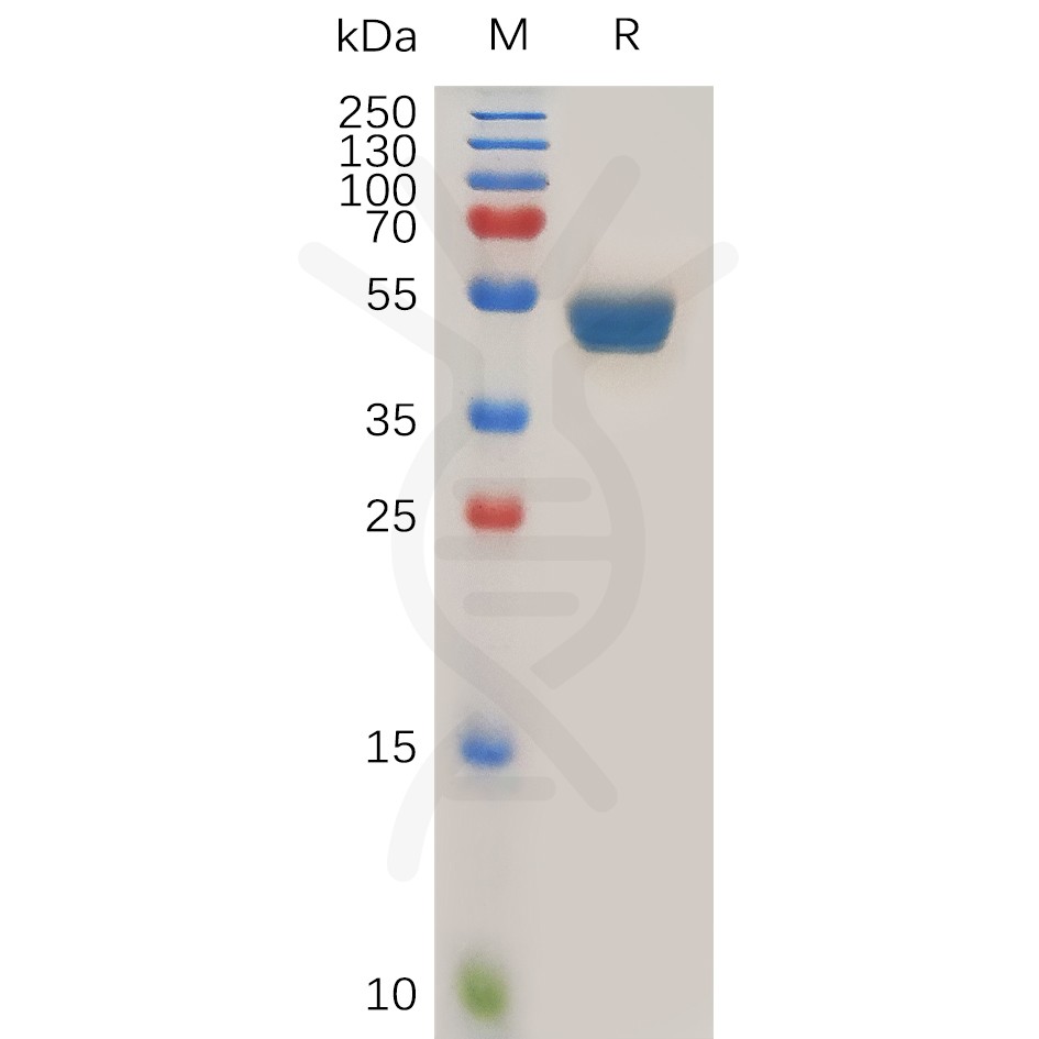 | Molecular Weight | The protein has a predicted molecular mass of 46.6 kDa after removal of the signal peptide. The apparent molecular mass of hFc-TNFSF15 is approximately 35-55kDa due to glycosylation. |