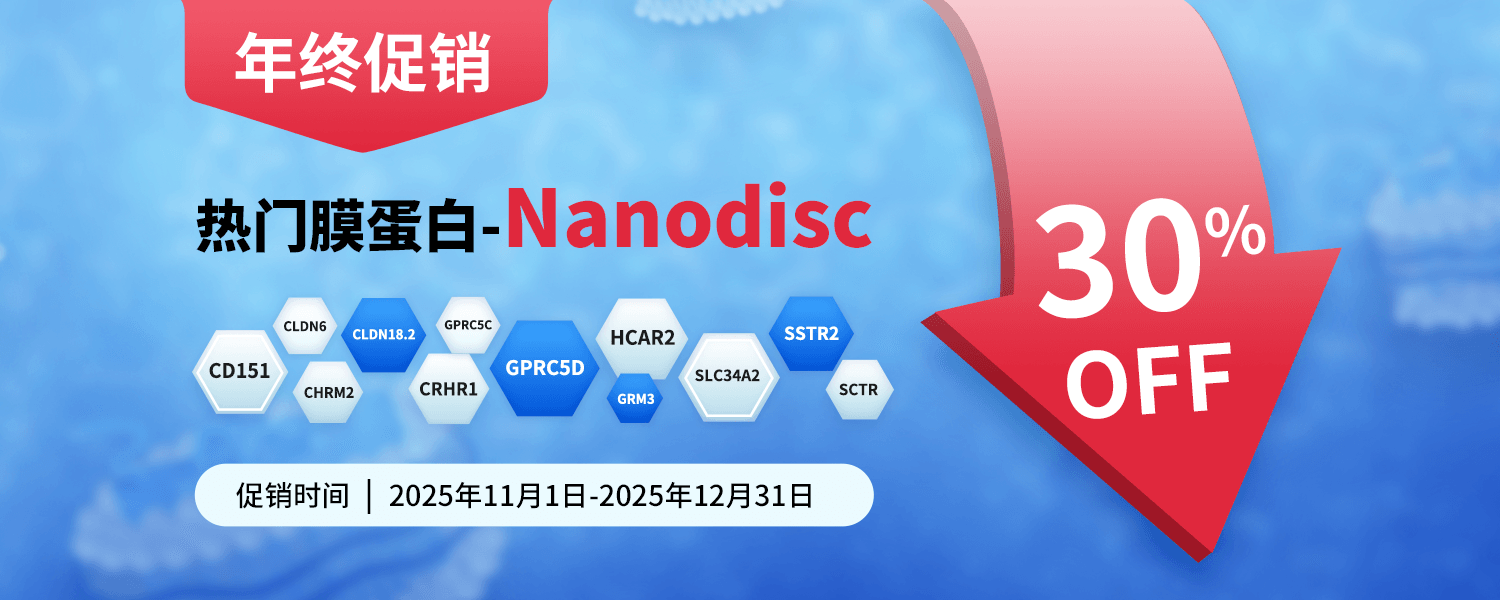 締碼生物現(xiàn)已建立700+現(xiàn)貨Nanodisc全長(zhǎng)膜蛋白庫(kù),覆蓋GPCR、離子通道、轉(zhuǎn)運(yùn)蛋白等熱門靶點(diǎn)。為感謝科研伙伴的支持,締碼特別推出Nanodisc產(chǎn)品年終7折促銷活動(dòng),助力更多團(tuán)隊(duì)加速膜蛋白藥物研究與創(chuàng)新。