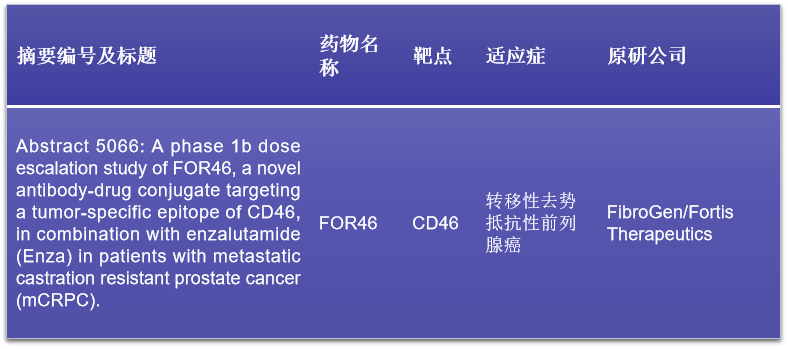 CD46,又稱膜輔因子蛋白,是一種I型膜蛋白,是補(bǔ)體系統(tǒng)的調(diào)節(jié)部分。大多數(shù)正常細(xì)胞上都有CD46表達(dá),CD46可作為膜輔因子介導(dǎo)C3b和C4b裂解,是先天免疫系統(tǒng)中經(jīng)典和選擇性補(bǔ)體激活級聯(lián)反應(yīng)的關(guān)鍵調(diào)節(jié)因子。目前已有多項(xiàng)研究證明CD46與多種免疫炎性疾病相關(guān)。此次會(huì)議預(yù)計(jì)有1項(xiàng)關(guān)于CD46 ADC藥物的臨床I期數(shù)據(jù)展示,涉及到的藥物是由FibroGen和Fortis Therapeutics聯(lián)合開發(fā)的FOR46。