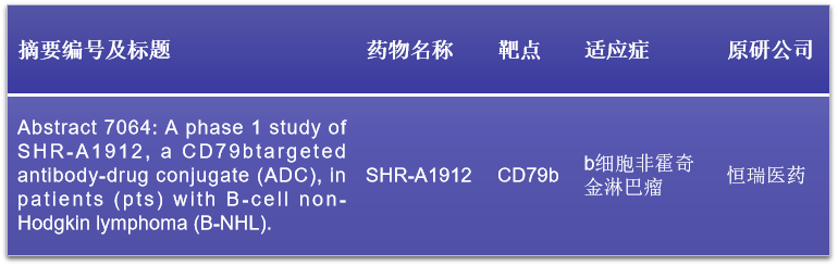 CD79b是B細(xì)胞抗原受體的信號組成成分,與CD79a通過非共價(jià)鍵與mIg相連,組成BCR復(fù)合物,具有信號轉(zhuǎn)導(dǎo)功能,提供B細(xì)胞活化所需的第一信號。CD79b具有B細(xì)胞譜系高度特異性,在多種B細(xì)胞淋巴瘤上均有較高表達(dá)?;诖颂匦?,CD79b成為B細(xì)胞異常增殖最有效靶點(diǎn)之一。在2024 ASCO會(huì)議上,恒瑞醫(yī)藥將公布SHR-A1912的臨床I期數(shù)據(jù)。