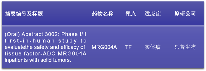 組織因子(Tissue Factor,TF) 是一種跨膜糖蛋白,在正常組織血管內(nèi)壁的內(nèi)皮細(xì)胞中不表達(dá),但在多種腫瘤中高表達(dá),如宮頸癌、乳腺癌、前列腺癌、結(jié)腸癌、食管癌和胰腺癌等。樂普生物將在2024 ASCO會(huì)議上公布TF ADC藥物MRG004A首次實(shí)體瘤患者給藥的臨床試驗(yàn)結(jié)果。