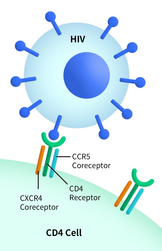 Fig 6.CXCR4 can act as a coreceptor (a second receptor binding site) for HIV when the virus enters a host cell. (https://clinicalinfo.hiv.gov/)