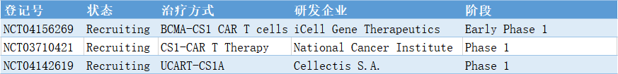 其他三項CS1相關(guān)臨床研究都處于1期階段,而且都是基于CAR T-細(xì)胞療法,暫無太多臨床數(shù)據(jù)。該靶點國內(nèi)藥企布局者很少。