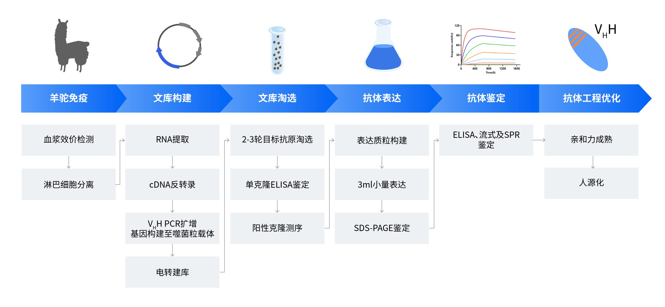 | V | 抗體表達(dá)與功能驗(yàn)證(ELISA、FACS,、SPR等) | 3周 | 功能評估報告 |