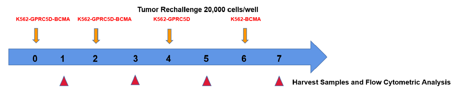 Using K562 stable cell lines expressing GPRC5D/BCMA as surrogate tumor cells, co-cultured with CAR-T cells. In this 7-day assay, CAR-T cells undergo four rounds of tumor challenge to assess the cytotoxicity of T cells against these “target cells,” thereby evaluating the specificity of T cell-mediated killing and the potential off-target risks.