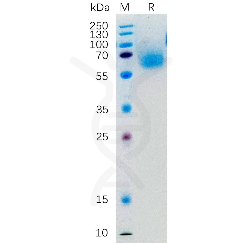 | Molecular Weight | The protein has a predicted molecular mass of 41.6 kDa after removal of the signal peptide.The apparent molecular mass of hFc-KLRG1 is approximately 55-70 kDa due to glycosylation. |