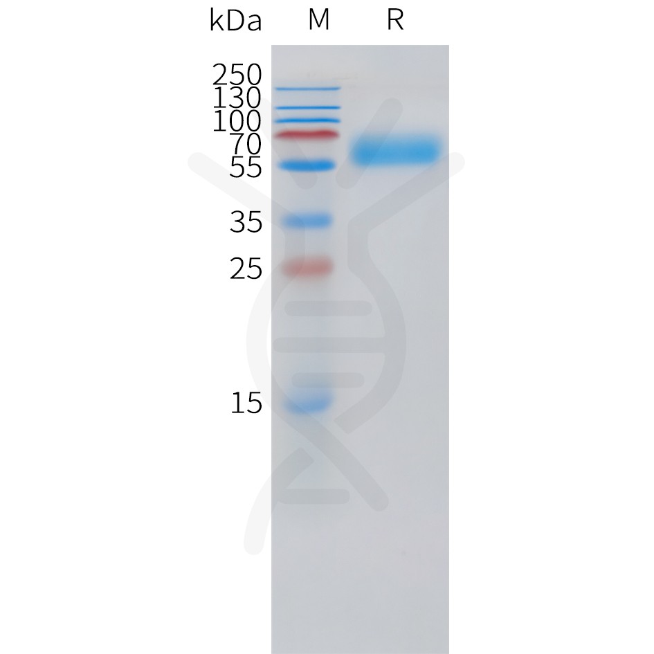 | Molecular Weight | The protein has a predicted molecular mass of 44.8 kDa after removal of the signal peptide. The apparent molecular mass of PTH1R-hFc is approximately 55-70 kDa due to glycosylation. |