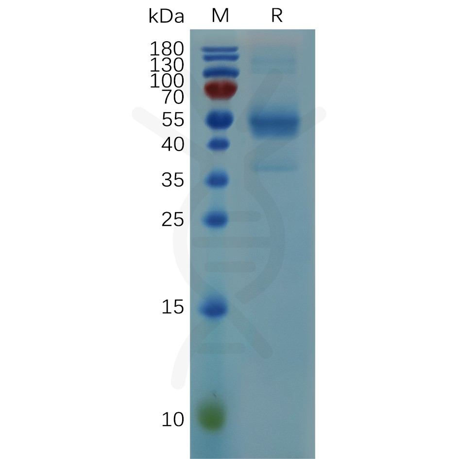 | Molecular Weight | The protein has a predicted molecular mass of 41.3 kDa after removal of the signal peptide.The apparent molecular mass of mHBEGF(24-160)-hFc is approximately 40-55 kDa due to glycosylation. |